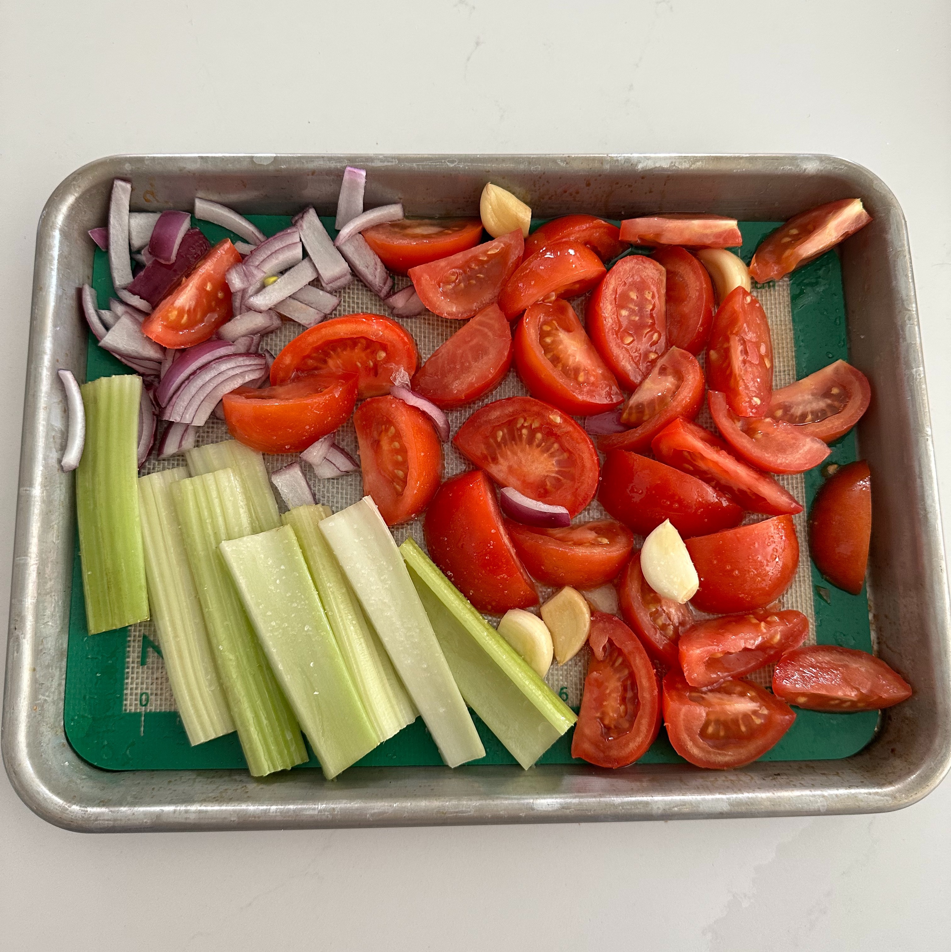 The great thing about this easy recipe is that the veggies are roasted so your tomato soup will have much more depth in flavor. Roasting the veggies will take about 45 minutes, so this allows you to multitask and finish up anything else you got going on!